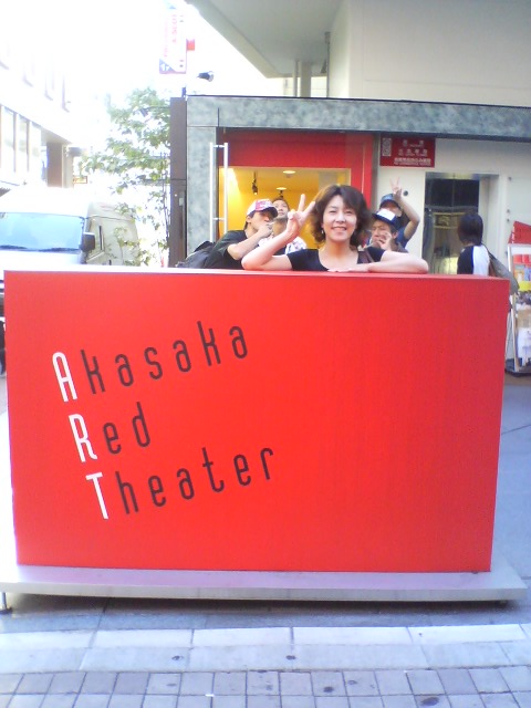 | 今日、次回東京公演(12月)の劇場下見に行って来ました! 大概は、ある程度知っていたり、下見をしてから劇場を決めるのですが、今回は強行手段で後付けの下見となり、ちょっとドキドキ。こじんまりしているけれど地乗りは良く、予想以上の環境でした。赤坂見附の駅からほんの2〜3分で1階には洒落たバーもあり、かなりテンションアップ!しかも劇場のイメージカラーが黒と赤で、D.Kイメージともピッタリ。なんだかワクワクしてきましたぁ〜。 ![]() 劇場前で・・・ |