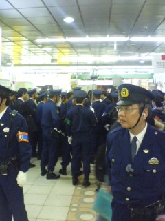 | 今日スタジオが終わり、大好きなもんじゃを食べ、至福を感じていると、新宿の駅が騒がしい・・・何だかとっても異様な光景。英語で書かれた看板、写真、座り込み、大勢の駅員と警察官・・・ どうやら今日はハロウィン。仮装をした在日外国人が車内や駅で大騒ぎ。 それに対して、ここは日本だ!!と、何十名もの団体がデモを起こしているらしい・・・ 怖い怖い・・・ うわぁ〜!! |