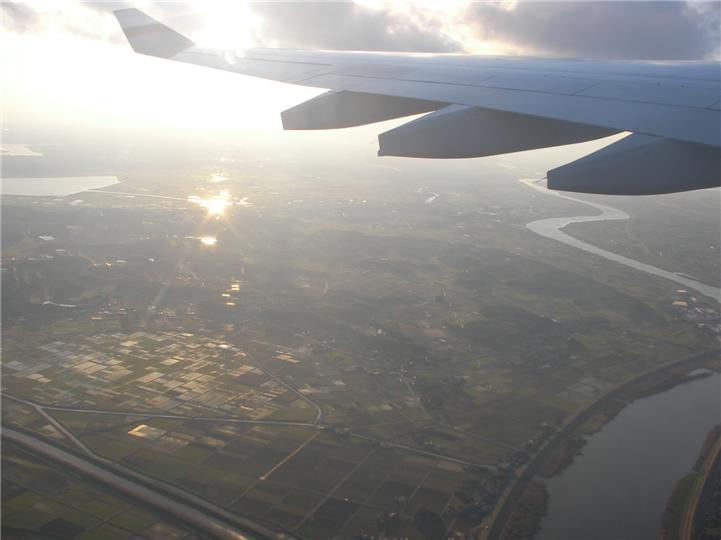 | 空の上から改めて地形を確認 機内で「カールじいさんの空飛ぶ家」をみました。 映像が超リアルで感激しました。内容もホロッとさせるのでオススメです。 さぁ、もうすぐ香港です |