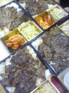 | DKスーパー応援団のN氏とO氏がこんなすごい物を差し入れしてくれました。 あ〜ホント匂いだけでも届けたい!しかもまだあったかい〜 特製タレをたっぷりかけて、黒毛和牛のやわらかいこと・・・ご馳走様です 頑張って良い芝居創りますね。 ジャーン!黒牛屋の特注ステーキ弁当 |