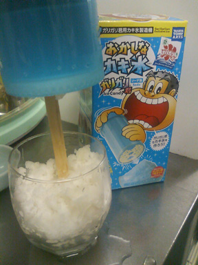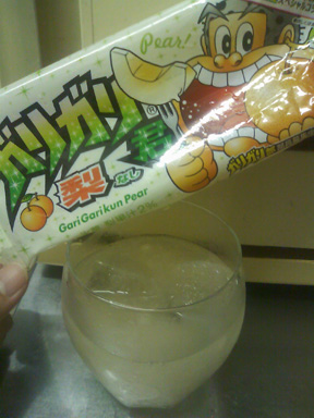 | ベルギーのチェリービールに引き続き、今マイブームなのが、30年人気が衰えない ガリガリ君割り! めっちゃ美味しいんですよぉ〜 作り方を伝授致しましょう! まず、お好みのガリガリ君を用意して下さい。(オススメは梨味!ポピュラーなソーダ 味でも そしてガリガリ君専用のかき氷マシンにガリガリ君を棒に刺さったまま挿入! 下にグラスを置いて、ガリガリと棒がポロリと落ちるまで回して下さい。 次に無味無臭のサワー系に使う休めの焼酎をドボドボとお好みで(グラスに半分弱 かな?)更に氷を3〜4個…… ポロリと落ちた棒でサクッと混ぜたら出来上がり〜 フローズンのガリガリ君割りが簡単に ガリガリ君マシンがなかったら手で押し潰しても マシンを使うとフワッフワですよ〜! 是非やってみて〜! ![]() ガリガリ君をかき氷にしてくれるマシンだど ![]() ガリガリ君割り…うまいっす! |