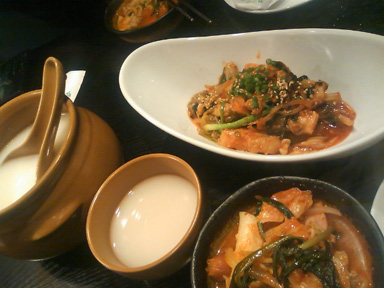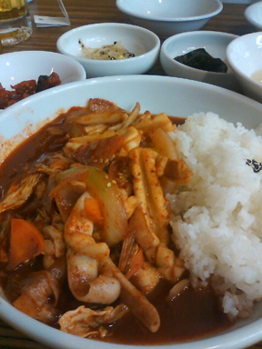 | 稽古終了後、久し振りに外食〜! いつもは稽古中、必然的に外食が多くなるのですが、今回私は、なかなか行く チャンスがありません…… 今日は無性に韓国料理が食べたくなって飛び込みました。 やっぱこの時期、熱くて辛くて…韓国料理は欠かせないでしょう〜 ブデチゲ、チゲ鍋、参鷄湯etc… 美味しい!辛い!元気が出た! 満足じゃ〜! ![]() ![]()