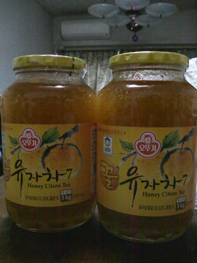 | 先日新大久保でゲットしたはちみつ柚子茶〜 この時期欠かせないのだ……体が温まるし、ビタミンもとれるし、HotでもIceでも 美味しい 夜は焼酎入れたりウイスキー入れたり…… しかもこれは1kg入り〜!超お徳です。 ただ重いので、一度に沢山買えないの…みんなにあげたいのに〜 ![]() 1kg柚子茶ゲット〜! |