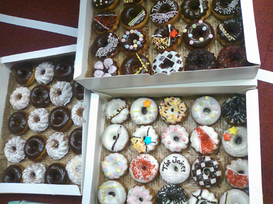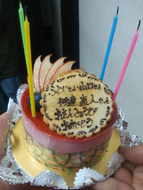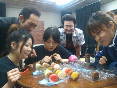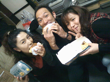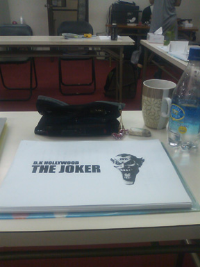 | 朝家を出て、スタジオに行き、稽古をし作業をして終電間際の電車に乗る…… いつも変わらない風景を毎日見ていると、時間の経過がわからなくなる…… 今日、スタジオに貼り出されている稽古スケジュールを見てちょっと焦った……ここ何日かの時間の流れが一瞬わからなくなった。昨日だと思っていた事が一昨日だったり3日前だったり…ちょっとしたプチワープ。 稽古中の、単純な毎日の流れの中で、少しでもメリハリを付けて、一日一日の印象をつけようと思った。 そんな稽古終わりに D.K をいつも応援してくれている悦代さんから差し入れが届きました! 手作りの焼きドーナツ かなりの数を食べまくり、貴重なタイトル入りのもいただいちゃいました〜! ![]() Jokerのタイトル入り手作りドーナツ |