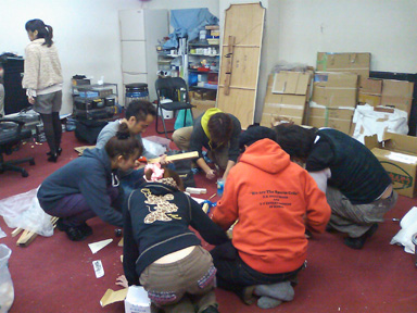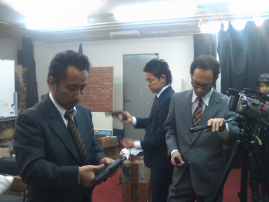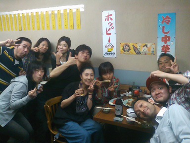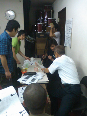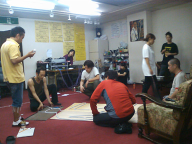 | いよいよ稽古も大詰め。 サスペンスってホント難しい……先に台本でストーリーを知ってしまっている私達には、もうお客さんがどこまで知っていてどこまでストーリーを追って着いてきているのか、だんだんわからなくなってしまう。 非常に難しい作業…でもこの不安が、舞台でお客さんの笑いに変わった時、全てが報われるんだよね?だから、その至福を感じるまでは、苦労すれば苦労するほど快感が大きくなる……さぁ、今日も終電まで頑張ろう ![]() 皆で作業中〜 |
