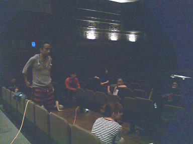 | 今日は朝から緊張!何故って?……今日は私達の一番の第一関門であるスタッフ通しなのです。 これでスタッフさんが作品を気に入ってくれると照明も音響も熱が入り、更に良いものに仕上がるわけです。 スタッフが笑顔で帰ったら私達も乾杯します。 イェーイ 今スタッフ通しが終わり、満面の笑みで帰って行きました。ホッとしました〜私達も今日は何処かで大いに盛り上がりますっ! ![]() 余裕の音響チーム ![]() 忙しそうな照明チーム |
