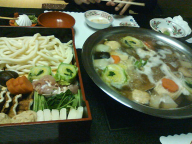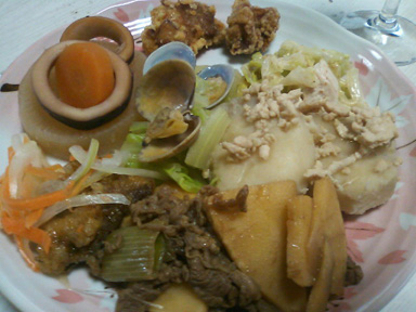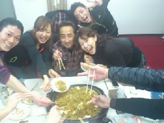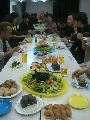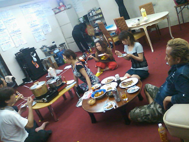 | 稽古は悩みながらも日々進んでいます。 稽古にも体力がいるわけで… 腹が減っては戦は出来ないわけですから… 昨日のパーティーの残りを囲んで夕食タ〜イム! ![]() 夕食タ〜イム! |