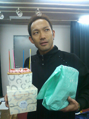 | 今日からスタジオ開始! 各々それなりのお正月を過ごし、すがすがしい顔が揃い、早速21日の発表会目指し て稽古が始まった… そして明日は劇団メンバーの川田君のお誕生日!1日早いバースデーを祝いました ![]() どこ見てる?こっちこっち〜…… |
