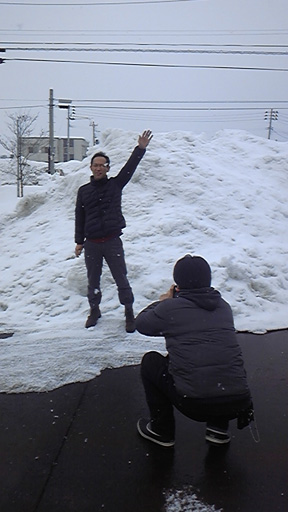 | わぁ〜いわぁ〜い 仕事から帰ろうとしたらいつの間にか銀世界! これだよ、これ! サクサクと…この雪を踏んだ時の感触… 待てよ………?夕方前に青森チームから到着の連絡が来た…既に積雪2m! そこから更にバスで山の上へ…と言っていた… 大丈夫か?青森チーム!!! ![]() 積もってる!積雪3cm? ![]() 川田を外谷が…それを石田が… |