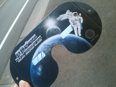 | 皆さぁ〜ん!見ましたかぁ? 金環日食 私も、見ましたよぉ〜! マンション裏の土手から見ようと思って出たのですが、家の前でちょっと振り返り、 空を見上げてみたら太陽がストレートにドド〜ンと見えていた… 土手まで行く必要もなかったので、その場で待つこと5分… はっきりと見えました!リングが… そんなに乗り気ではなかったけれど、ちょっと神秘的でした… ![]() 日食グラスで… |