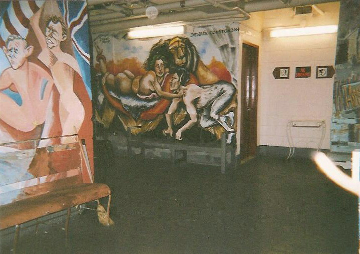 これは、劇場の地下。お手洗いの前の壁です。こんなところにもアートが・・・。 |