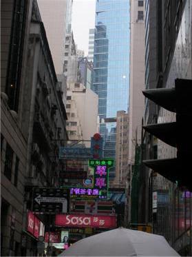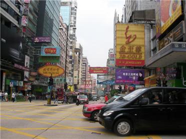 | ここは九龍島の真ん中を走っているネイザンロード。 この2枚の写真はネイザンロードの、ある交差点に立ち、 右と左を写したもの。こんなに違うんだよ〜 ここだけこんなに違うって・・・この境には何があるのだろう? |
