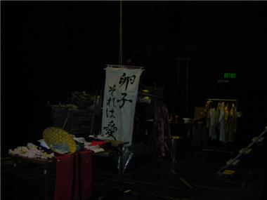 舞台袖に設けられた小道具置き場
