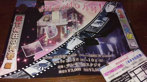 | 池袋にあるシアターKASSAIで、以前D.K の作品、「World of yours」に出演してもらった矢野たけし君の舞台を観劇。 小さい劇場だけどアイドルが出演してたのかな? 客席はちょっと変わった客層で熱気ムンムン。 今時の若者ならではの学生物。 テンポがあって、なかなか見応えがありました。 ![]() | |