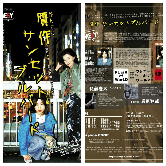 | 正月気分から醒め、何気なく日常生活が戻って来ました。 さぁ、2017年が動き出します! 新しい年の幕開けとして2月、人生初の二人芝居に挑みます。 作・演出は劇団の後輩、越川詩織 その他、ヘアメイク、衣装、音楽も若手のプロがタッグを組んだ新しいプロジェクト、 キャパ60程度の特殊な空間で行います。 「贋作 サンセットブルバード」 日時:2017年2月24日(金)〜26日(日) 24日(金)19::00〜 25日(土)13:00〜、17:00〜 26日(日)13:00〜、17:00〜 *開場は開演の30分前 会場:space EDGE 渋谷区渋谷3-26-17野村ビル1F http://www.space-edge.jp/ チケット:3500円(完全予約制・自由席) ご興味のある方は是非!ご連絡お待ちしています。 ![]() | |