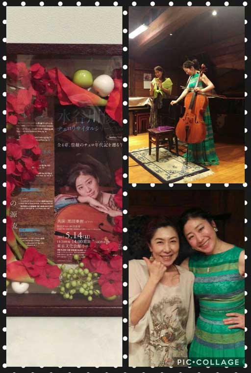 | 世界中を飛び回っている大好きで尊敬しているチェリスト、水谷川優子さんのホームコンサートにお声をかけ頂き、参加させて頂きました。 5月14日に東京文化会館で行われるリサイタルの一部を抜粋して、演奏して下さったのですが、奏者の息づかい、呼吸音を感じられる距離での生演奏は迫力があり、演奏後のホームパーティー含め、とっても贅沢で、楽しい時間でした。 ![]() | |