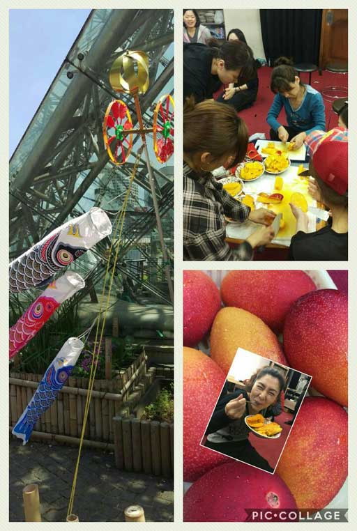 | こどもの日〜っ! 都会ではめったに見れなくなった鯉のぼり〜 そして稽古場では、先日差し入れで頂いたマンゴーが丁度食べ頃に! 生まれて初めての、こんなに沢山のマンゴーとの出会い・・・ これでもか!と口一杯ににほおばらせていただきました。 めっちゃめちゃ美味しかった ![]() | |