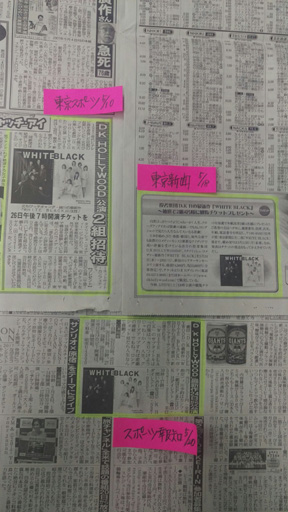 | スポーツ報知、東京新聞、東京スポーツ、新聞各社に公演の記事が掲載されました。 見かけたら是非、目を通して下さいまし。 ![]() | |