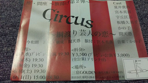 | 何年か振りに池尻大橋の地を踏んだ。 十年以上前の共演者の夏井さん(ナッツィ〜)のお芝居を観るために・・・ 20人で満席の会場。 目のやり場に困りましたが、不思議な空間でした。 ![]() | |