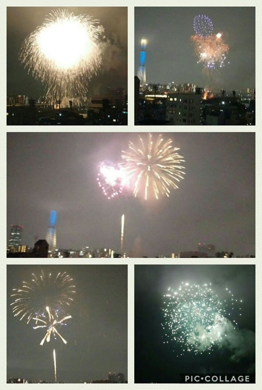 | 隅田川花火大会〜! 生憎の雨も何のその、友人宅から最高の眺め。 贅沢な時間・・・・ ![]() | |