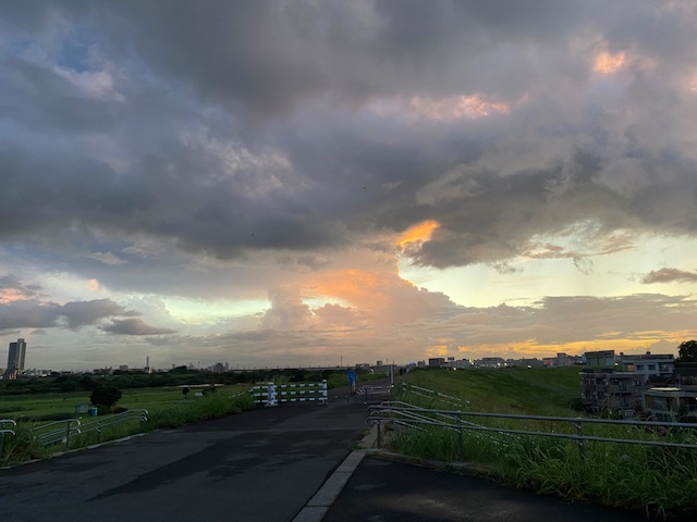 相変わらず毎日蒸し暑い日が続いている お盆の台風騒ぎで、結局どこも行けず終い 昼間、溜まってた湿気が一気に土砂降りとなって地面を叩きつけた 長い時間ではなかったけれど、恵みの雨となった。 お陰で気温が少し下がったので、母を連れて散歩に出た。 空があまり見ない色してる。 また降るのかな? ![]() |
