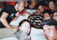 毎度おなじみとなった打ち上げ会場。観光客は行きたくても行けない場所にある海鮮市場。打ち上げが夜のためいつも貸切状態。上海蟹、ロブスター、海鮮料理がめっちゃ美味しい!あっ!思い出しただけでよだれが・・・・ |
