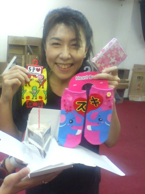 | やられました〜! 明日は私の誕生日。 一日早いメンバーのサプライズに思わず〇〇〇。 みんなが選んでくれたのは私の大好きな韓国料理のお店。 みんなで韓国料理を食べるのは韓国以来。懐かしい話で盛り上がりもう、止まらな〜い。 2件目もやっぱり韓国居酒屋!!チャミスル チュセヨ〜 みんな、ありがとうね! ![]() スタジオ生からソックスとメッセージカードを A_P_Y 片手に・・・
