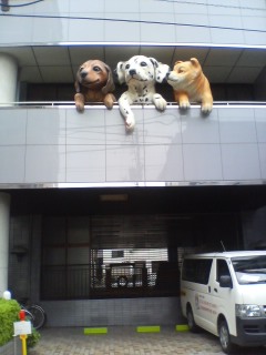 | 稽古場に向かう途中にな、なんとデカすぎる犬達を発見 しかも帰り道の暗がりで悲鳴が聞こえた先がコレ 暗闇に浮かぶ巨大なワンちゃんは何とも言えず不気味でした〜 ![]() なんじゃこりゃあ〜?? |