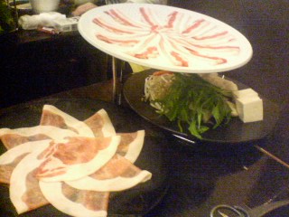 | 今日は稽古をちょっと早く切り上げ、メンバー全員で訳あって黒豚しゃぶしゃぶを食べに行きました 稽古中はなかなかちゃんとした食事をとりにくいので、久々のご馳走でした。 やっぱり体力勝負!しっかり食べて体力つけなきゃね〜 |