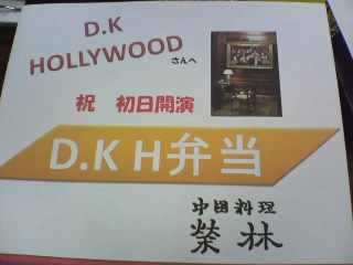 | 24日。クリスマスイブは、あっという間に過ぎて行った。 ロビーの飾りだけが唯一クリスマスを感じさせる・・・ 時間に追われ、ただ劇場にいたという事しか記憶にない。 いつもなら初日の昼はゲネプロ・・・なのに今回は掟破りの初日、マチネ本番。 いやぁ〜調子が狂う身体が動かない・・・でもやるっきゃないよね。 しかも今日はクリスマスバージョンで台詞や演出が変わる。 もうバッタバタでした〜 マチネとソワレの間に届いた‘榮林’さんの特製弁当の差し入れでありがたく元気をいただき、無事、初日終了 お客さんにもとっても喜んでいただきました よっしゃー!明日からも頑張るぞぉ ![]()