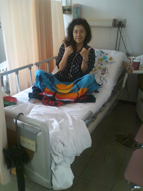 | 術後3日目… 私のお腹には透明のテープが貼られているのみ…透明なのでもちろんキズは丸見え… 唯一貼られていたそのテープを、剥がす時が来た… 先生に聞くと、剥がした後は、もう何も貼らずにガーゼさえもしないという キャ〜!考えただけできょわいんですけどぉ 誰か助けて〜! 術後3日目ですよぉ〜!でもホントは先生がいらっしゃれば、昨日の内に行なわれる 予定だったらしい… でも、おそるおそる剥がしてもらったら、傷口はピッタリとくっついていて、触っても 大丈夫なほど… シャワーと退院の許可が下りた。 急な展開に怖じ気付き、退院は明日に延ばしてもらった。 今の医学が凄いのか、人間の身体の自然治癒力が凄いのか…… どちらにしても驚きです。脱帽でした ![]() すっかり元気! |