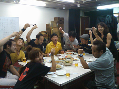 | 久しぶりにもんじゃ祭り〜! スタジオが終わって、次回公演の準備をして…… ペコペコのお腹を抱えて幡ヶ谷のなんじゃもんじゃへ! 太一が投げかけてきた「演劇ってなんなんすかねっ…」 で火が付いた。 お陰様で、約6時間の討論会となった。 ![]() ひっさびさ〜! |