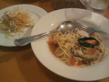 | 久しぶりに渋谷に出て介護の授業で知り合ったお友達とランチ! モヤイ像 何口だったっけ?カンが外れ、ほぼ渋谷駅を一周して到着…う〜汗まみれ ランチはスペイン料理に決定! どれもこれもシーフード満載で美味しそう〜 でも、メインはこれを選んでしまいました…。 コースで食べたにも関わらず、食後場所を替え、続けざまにドーナツとまたもや コーヒー 食欲だけは止まらない〜 う〜運動はまだ控えているのでカロリー消費が追いつかない… いやぁ〜キケン、キケン!どうすんべ〜! ![]() スペイン料理…でもやっぱりパスタぁ! |