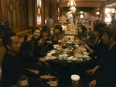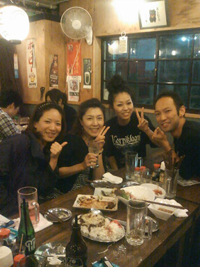 | 公演が終わり、翌日から仕事に復帰! 身体を休める事よりも、休んだ事によりボーッと放心状態になってしまいそうで怖い のかも?…… だからと言って、身体の疲労もピークに来ているので、上手く休みを取らなければ。 今日は今回の公演に来てくれた友達達がバッタリ劇場で会い、板橋で居酒屋を やっている友達のお店“はたご亭”でプチ同窓会を行う事になった。スタジオ終了 後、劇団総会があり、9時過ぎての参加になってしまったのですが、女6人、沢山 いたお客さん達の中でもダントツにうるさかった…… コワイコワイ…… 立派な休暇です。 |