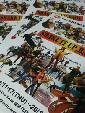 | いよいよ…… 本日‘聖地’へ入り、ゲネプロ、そして本番!バッタバタの一日。時間は容赦なく過ぎて行った…。 あっという間…心の準備も出来ないまま本番を迎えた。 初日から予想以上のお客様が詰め掛けて下さり、客席案内に多少混乱は来したものの、無事幕が開いた。 さぁ!D.K HOLLYWOOD の祭りが始まる… 私達と同様、お客様にも楽しんでいただきたい。 Let's enjoy |