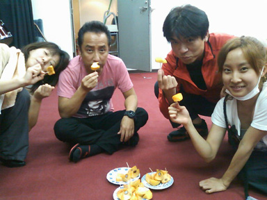 | スタジオでの稽古終了後、最終確認の為会場である‘聖地’へ向かった。 無事に会場スタッフとの打ち合わせと確認を終え、メンバーで最終打ち合わせ。 ‘聖地’の2〜3件隣のお店、高麗に入った。今日はこのお店の11周年記念日らしく、生ビールがなんと11円 そりゃ入るっきゃないっしょ!飲むっきゃないっしょ! ビールはすぐにお腹が張ってしまうので、普段あまり飲まないのですが……がんばったよ! う〜贅沢な悲鳴をあげながら…お疲れさまでした〜! ![]() 打ち合わせを兼ねて…… ![]() サギョプサル〜 ![]() |