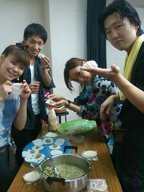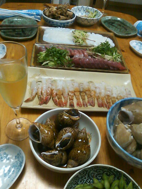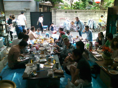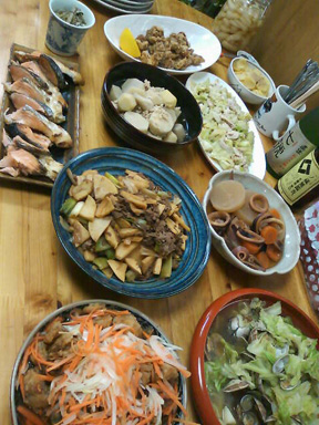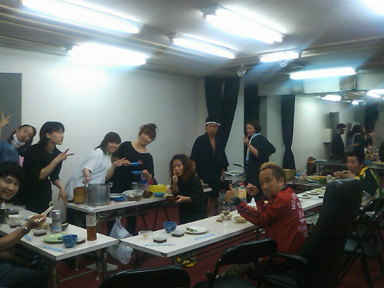 | 稽古は悩みながらも日々進んでいます。 稽古にも体力がいるわけで… 腹が減っては戦は出来ないわけですから… 昨日のパーティーの残りを囲んで夕食タ〜イム! ![]() 夕食タ〜イム! |