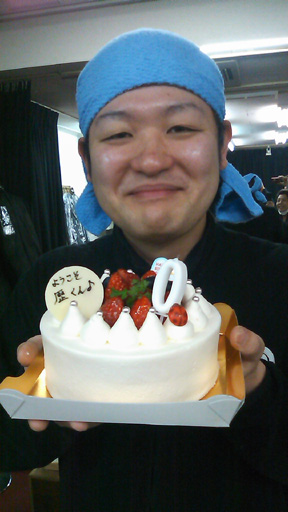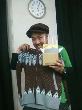 | 今日からスタジオ開始! 各々それなりのお正月を過ごし、すがすがしい顔が揃い、早速21日の発表会目指し て稽古が始まった… そして明日は劇団メンバーの川田君のお誕生日!1日早いバースデーを祝いました ![]() どこ見てる?こっちこっち〜…… |