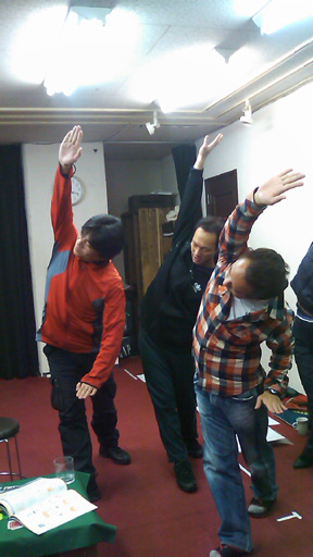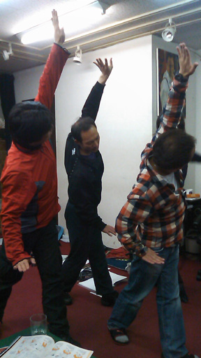 | 大阪公演に向けて稽古真っ只中……。 突然ボスが……。 つられて皆も……。 ![]() 腰痛ストレッチ1 ![]() 腰痛ストレッチ2 |