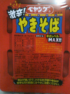 | 仕事帰り、近所のスーパーで買い物をして帰った…深夜番組で今日買った品物が 取り上げられてた… ペヤングソース焼きそばの激辛版 ペヤングのHPではあまりの辛さで毒だ!とか、もはや兵器だ!とか散々言われま くっているらしいが、これは私にとってかなり良い感じの辛さなのです。 ファンも沢山いるようで、今やなかなか手に入らないらしい…(たまたま買えた私は ラッキーなのか?買えないと聞くと、今日も行って買いだめしたくなるのが心理…) 辛いのに強い方は是非!試してみて〜 他にも私のお気に入りの、激辛商品をご紹介しまぁす! どれも中途半端ではないイケてる辛さです。これでなければ商品に激辛の文字を 入れてはいけません。 ![]() 辛いの大好きな私がうわっ辛っ!って思った ![]() 大阪で購入!小量で効き目あり! ![]() 海鮮ラーメン…魚介のだしがきいてて旨辛! |