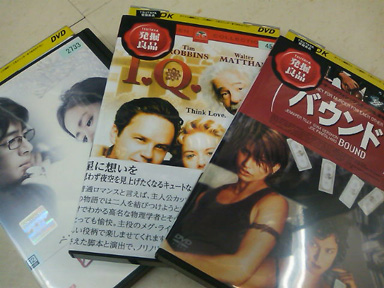 | ひっさびさにTSUTAYAに行き、ビデオを借りました〜! 久々過ぎて見たい映画が何だったのかすら思い出せず、ビデオ屋さんオススメの 発掘良品とやらに頼ってしまい、この3本を選びました! ウフッ、楽しみ〜! ![]() 発掘良品…にちょっとそそられて |