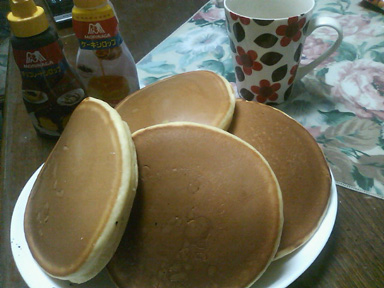| エヘヘへ〜… 昨日寝る前に、明日は大好きなパンケーキを創り置きしようって決めた! 朝起きて、即実行 やっぱり焼きたてはおいひい〜! し・あ・わ・せ ![]() 大好きなパンケーキ焼きました!…7枚! |