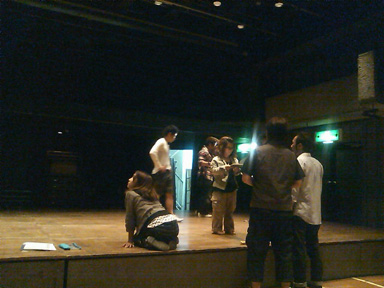 | 今回初めての通し稽古を行った。 しかも、それがスタッフに見せる通しと重なった… スタッフに見せる一番大事な通しがブッツケとは…… まぁ、一回の緊張で済むっちゃあちょっと助かった気もしますが 最初の通しはいつも全員100円持って上演時間をトトカルチョ! 今回の勝者は太一〜!私は2分違い…残念! ![]() 一人占め〜 |
