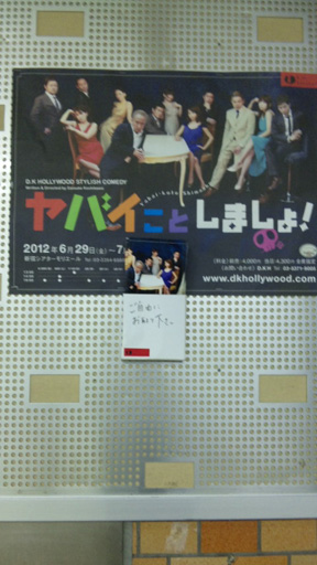 | 通しの稽古が出来るようになると、次のバタバタが始まります。 今日は衣装合わせと転換稽古。 暗転の中でのセットチェンジや小道具の出ハケは楽じゃない… 念入りに稽古して確実に導線を掴んでおかないと、暗闇で衝突 意外と舞台裏は戦争なのです。 …そんな事も考えながら、 「ヤバいことしましょ!」 楽しんで下さいね。 ![]() 作戦会議! ![]() 何かに悪戦苦闘している山口さん… ![]() 新宿三丁目の駅で… ![]() 発見! |