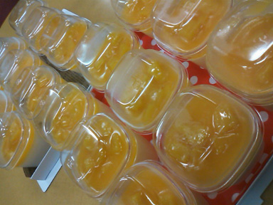 | 台風一過…… あぁ〜昨日の帰りはまじ悲惨でした。 結局約3時間電車の中で過ごし、家に辿り着いたのは午前2時…… もはや雨も止み、風も止み、台風であった事すら忘れてしまう時間の経過でした… 重い頭を抱えてスタジオに向かうと、D.K を応援してくれている悦代さんから差し入 れが いつもいつも応援団に支えられているなぁと実感… 私達は良い作品を創る事でしかお返しが出来ないから、その為に、頑張らなきゃ! 頑張らなきゃ〜!! ![]() 手作りパンナコッタ! |