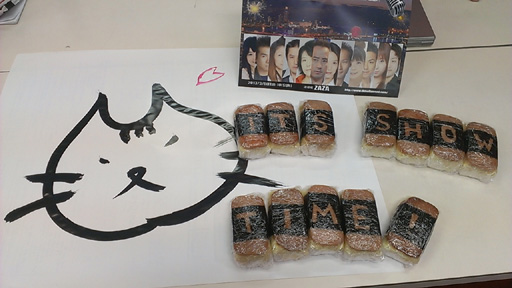 稽古修了後、スタジオにスパムおにぎりが届きました! まだ暖かくて真心が伝わって来ました。 美味しかった〜! しかも海苔でタイトルが型どってあります。私は「!」をいただきました。 ご馳走さまでした! ![]() |