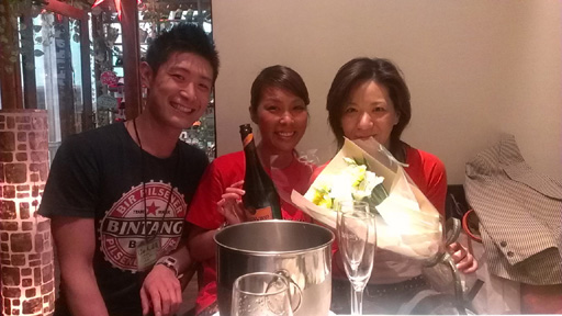 今日はスタジオ終了後、スタジオ近くのアジアンパームにボスとまこと食事に行きました。 ひっさびさのアジアンパーム! アジア各国のビールに赤ワイン、白ワイン・・・ヤムウンセン、タイカレー、チーズ入り ナン、タンドリーチキンにエビ擂り身団子etc・・・ もう止まりません。 行っちゃえ、行っちゃえ〜! |
