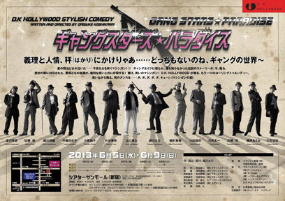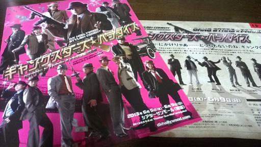 早かったぁ〜! いつもに増して早かったぁ〜! ギャングスターズ☆パラダイス 無事、千秋楽の幕を下ろす事が出来ました! ご来場下さった沢山のお客様(特に、昨日、今日でお席がなく、補助席や階段でご覧になって下さった方々)本当にありがとうございました! 皆様の笑い声につられ、私達も楽屋や袖中で笑っていました。 次回また皆様と、新大久保でお会い出来る事を楽しみにしています。 ギャングスターズ☆パラダイス 、バンザ〜イ! ![]() ![]() |